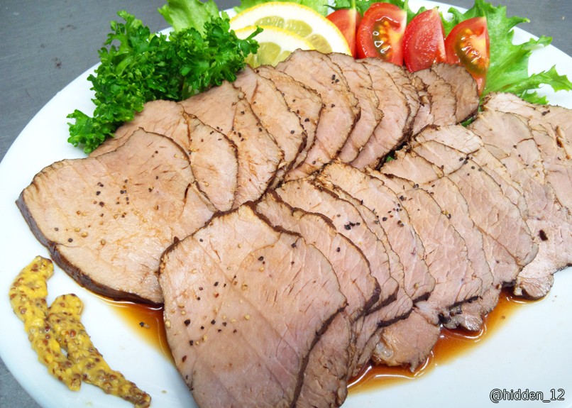紅茶豚。甘酢醤油とマスタード。