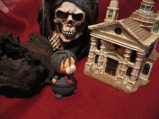 背後の死神は机で使っているペン立て。