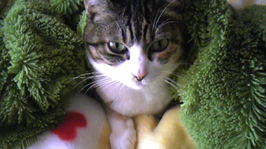 寒いから布団と友達です。