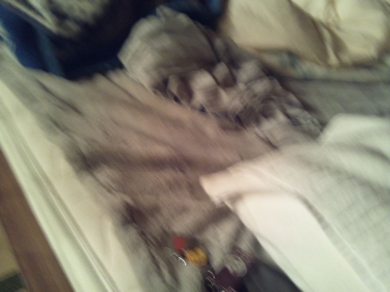 ベッドや毛布を蹴散らしながら